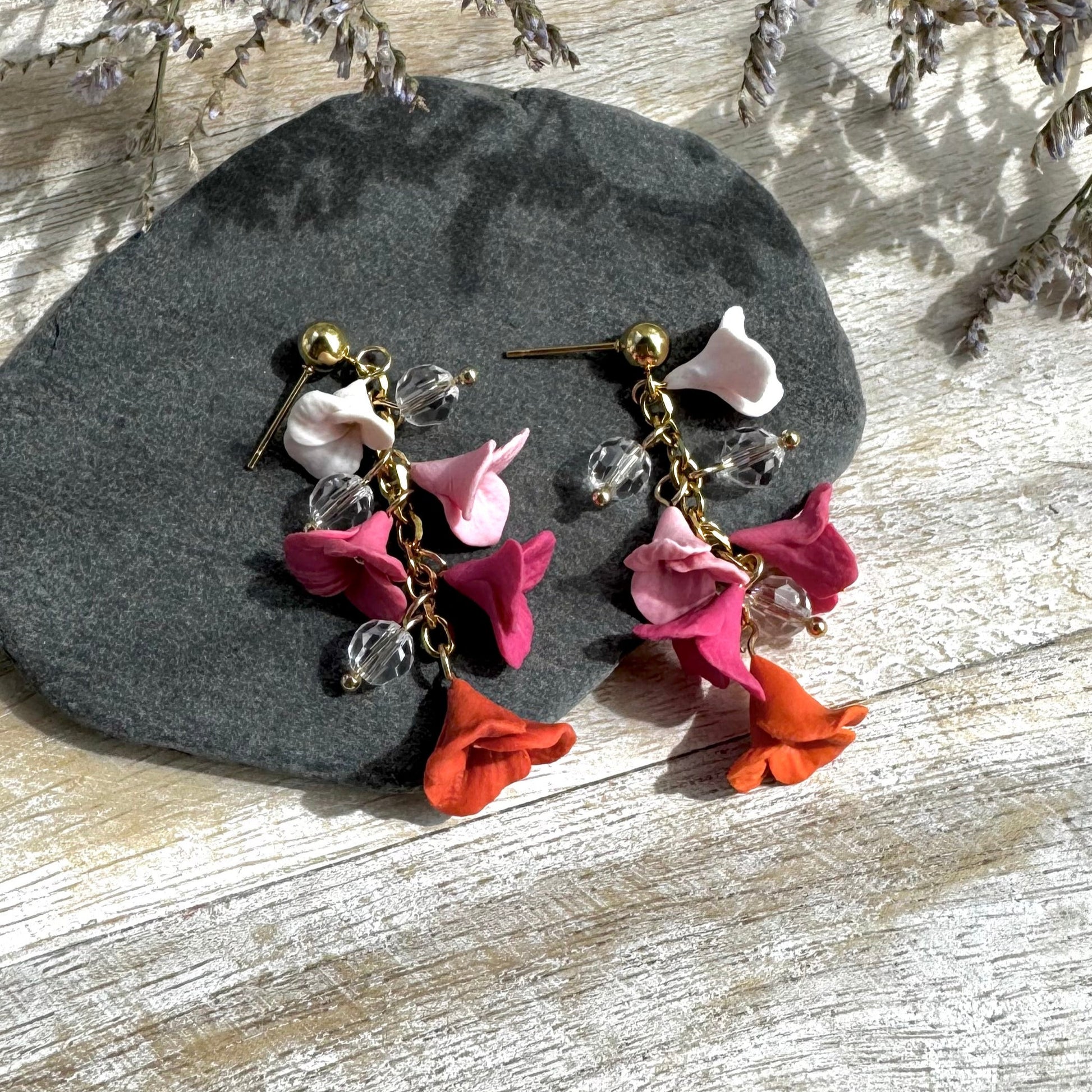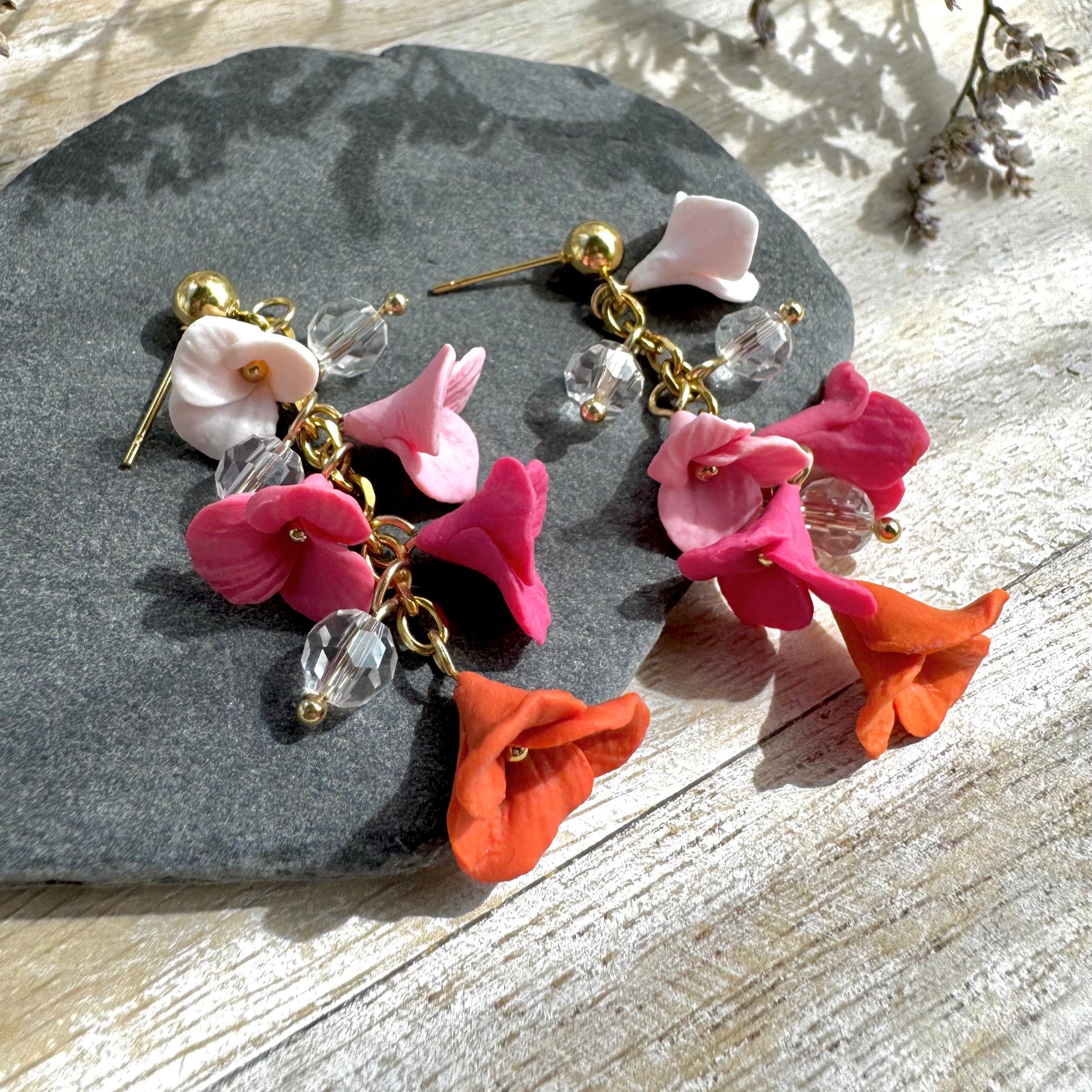 Pinkki-oranssi kukkarimpsu kristallilasihelmillä! Vain tämä pari!