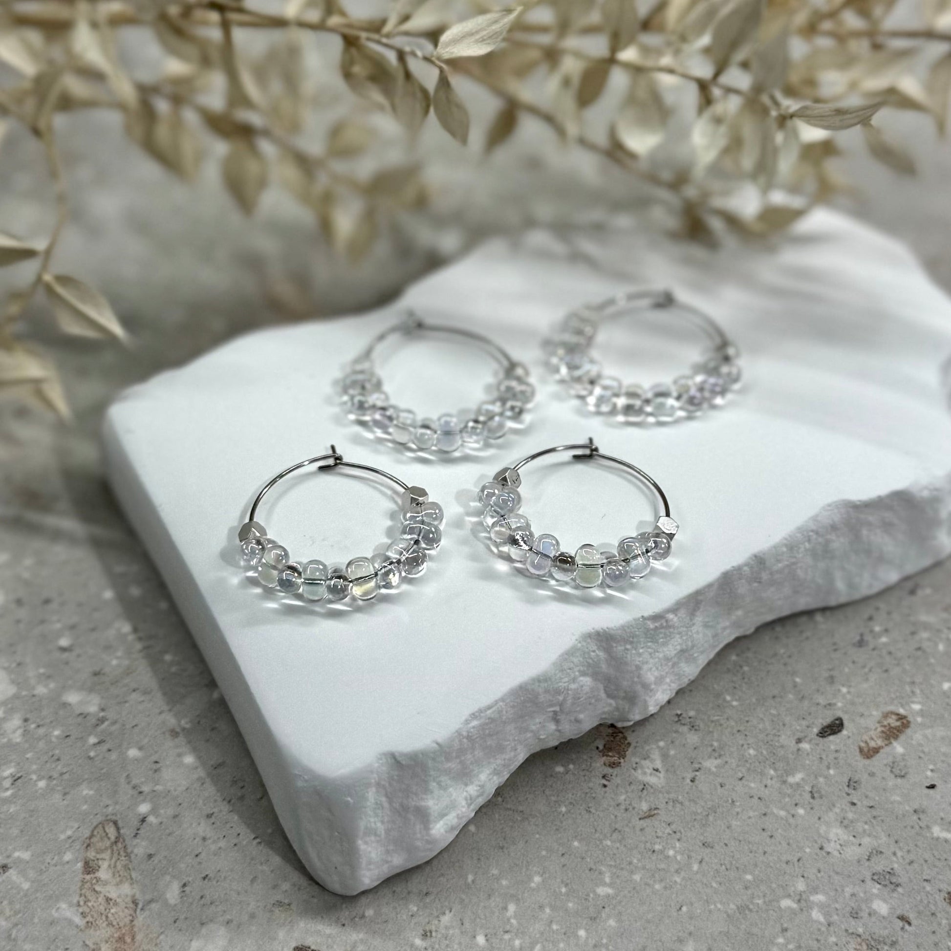 Uutuusmalli! Kirkkaita lasihelmiä ohuessa renkaassa! Katso myös muut Kuura-sarjan yhteensopivat korut.
