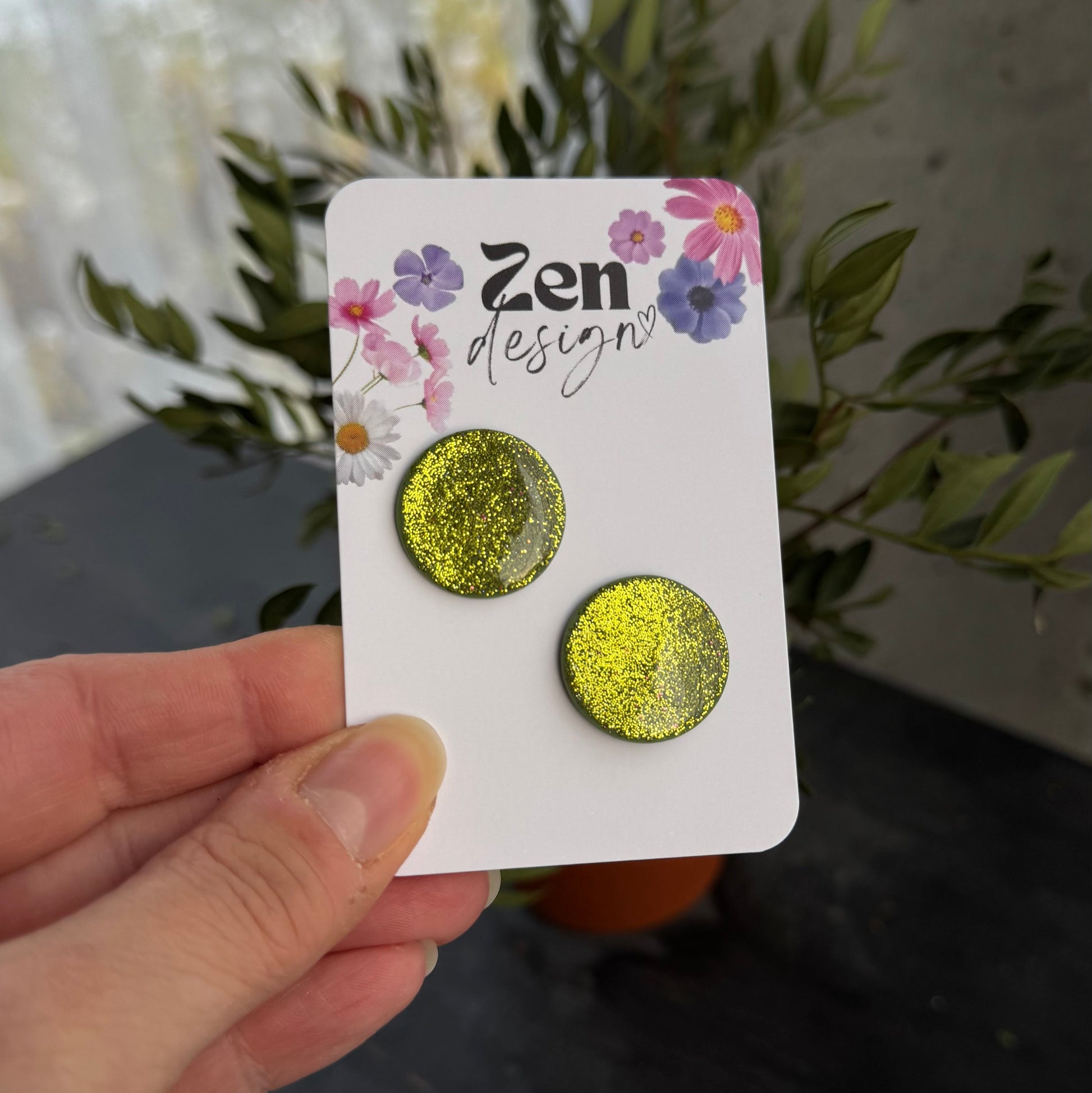 Limen vihreät glitternappikorvakorut! Tappi on lähempänä reunaa, joten korvakoru mahtuu hyvin korvanlehdelle.