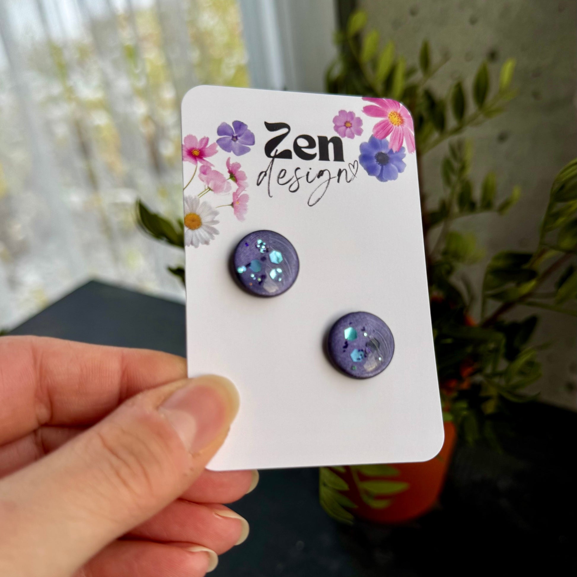 Lilat glitternappikorvakorut! Korvakorun tappi on keskellä nappia.