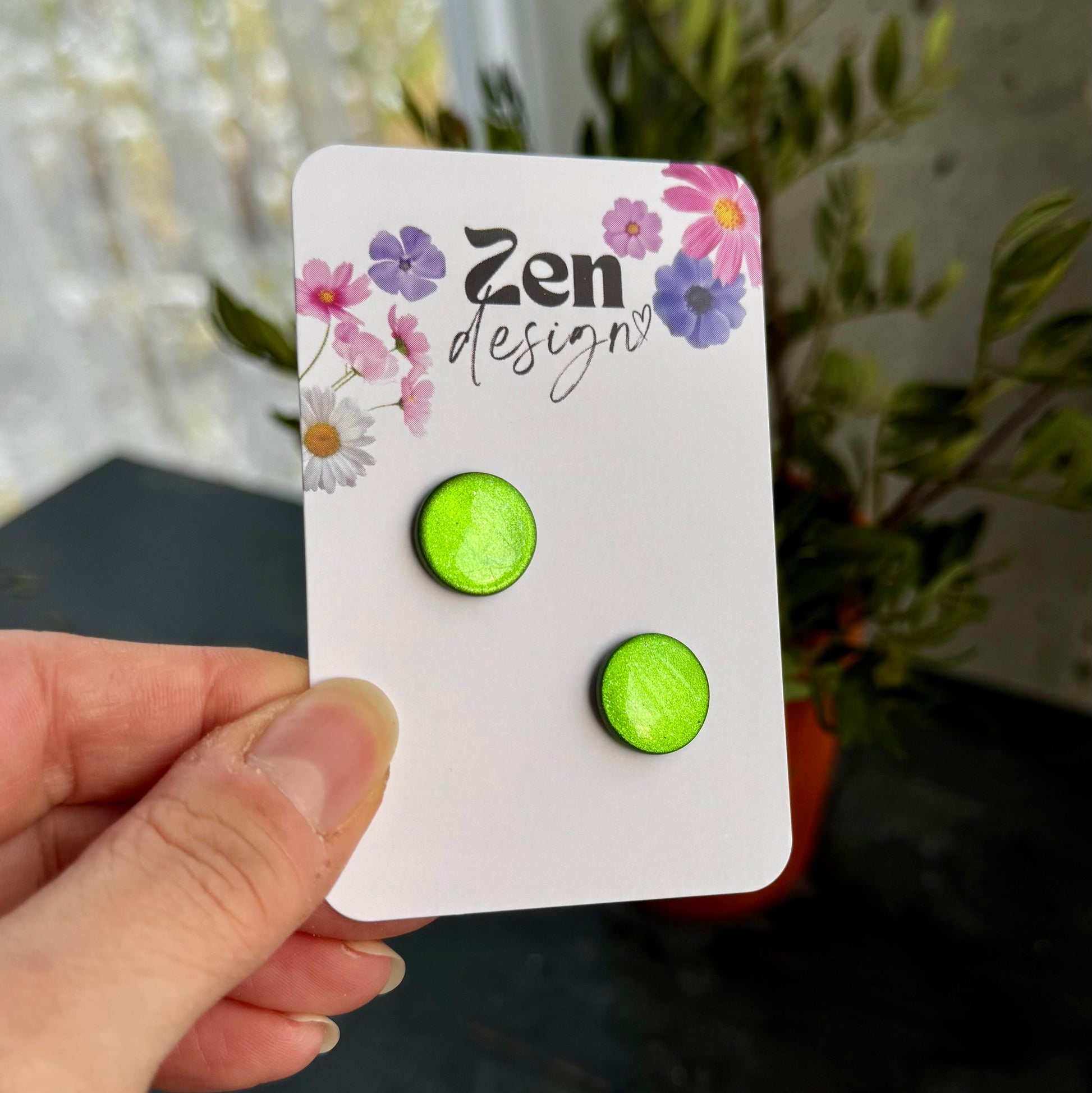 Säihkyvän vihreät nappikorvakorut! Korvakorun tappi on keskellä nappia.