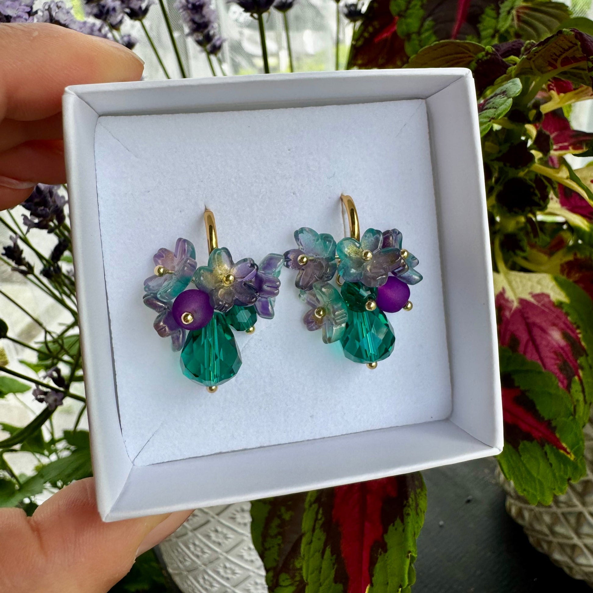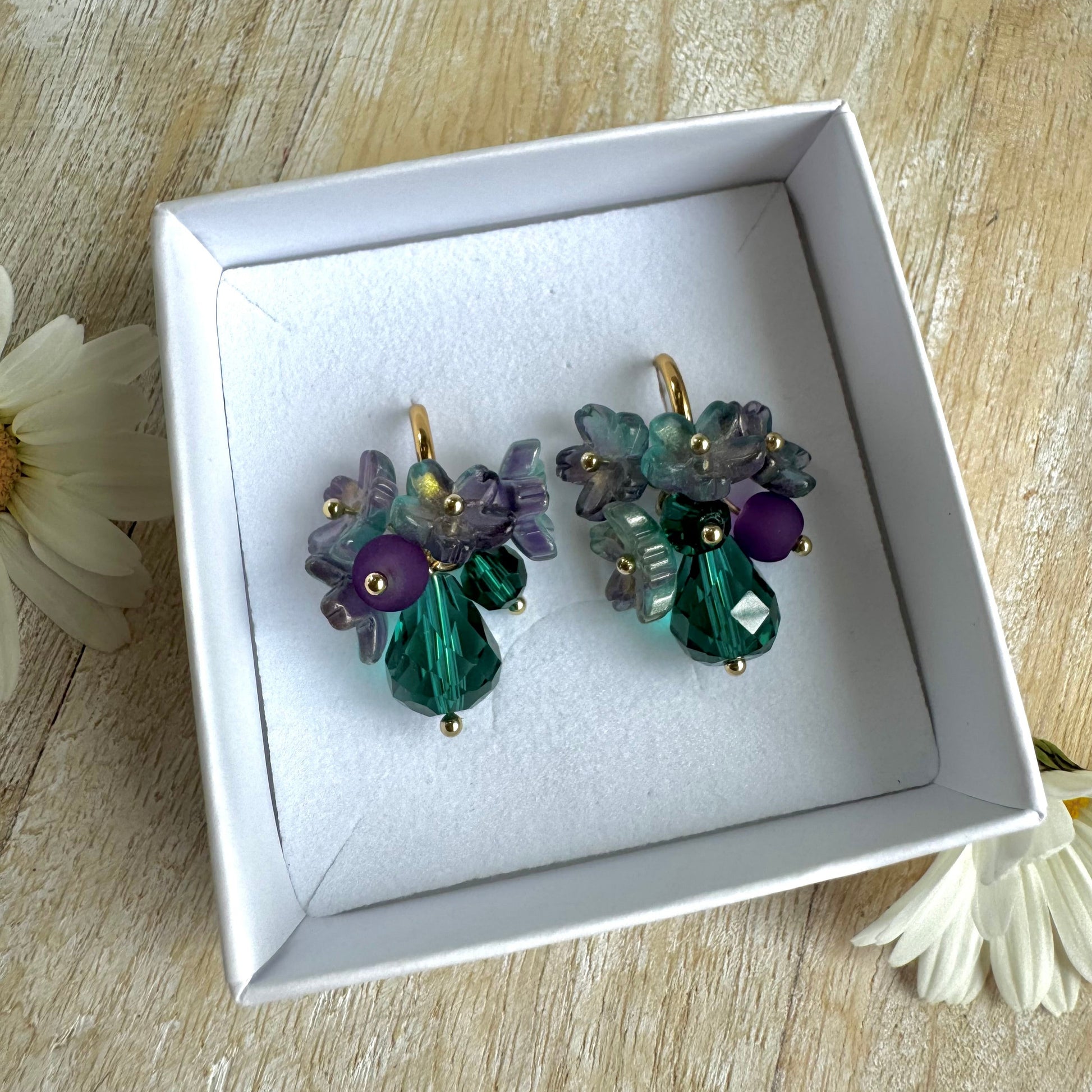 Materiaali: Kirurginteräs, lasihelmet, lasikukat 10 mm.