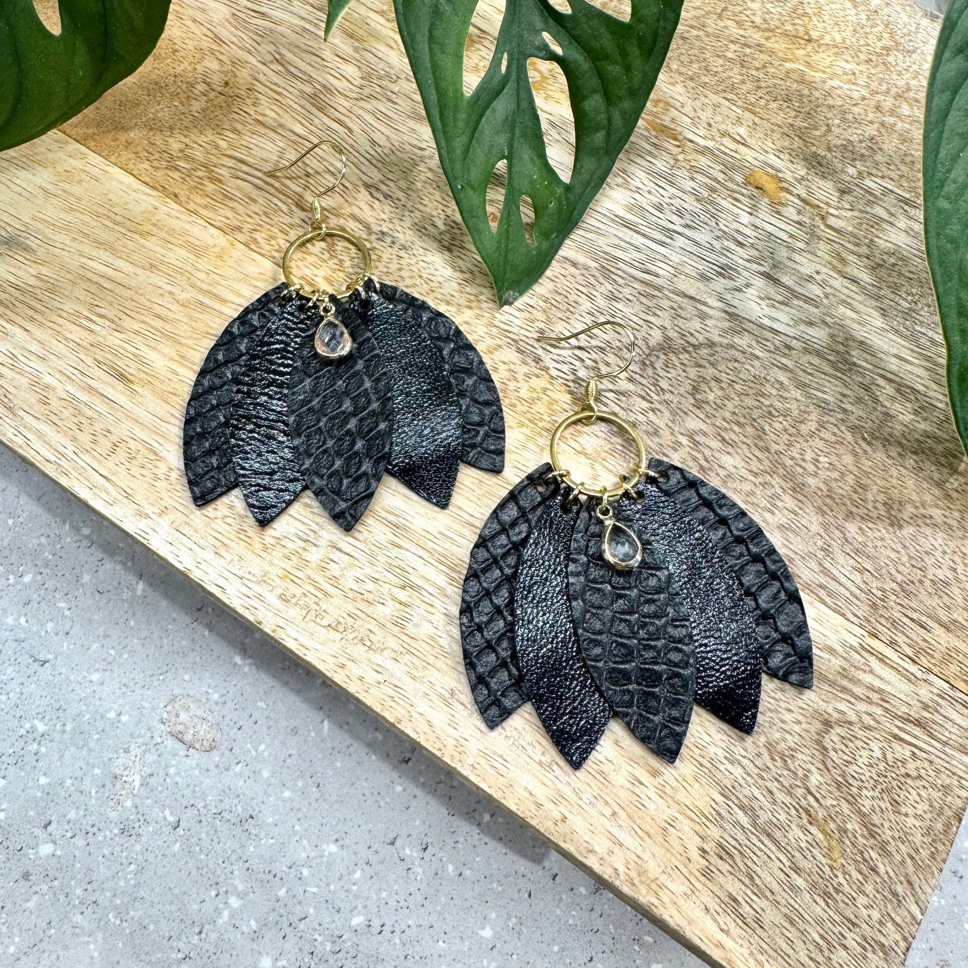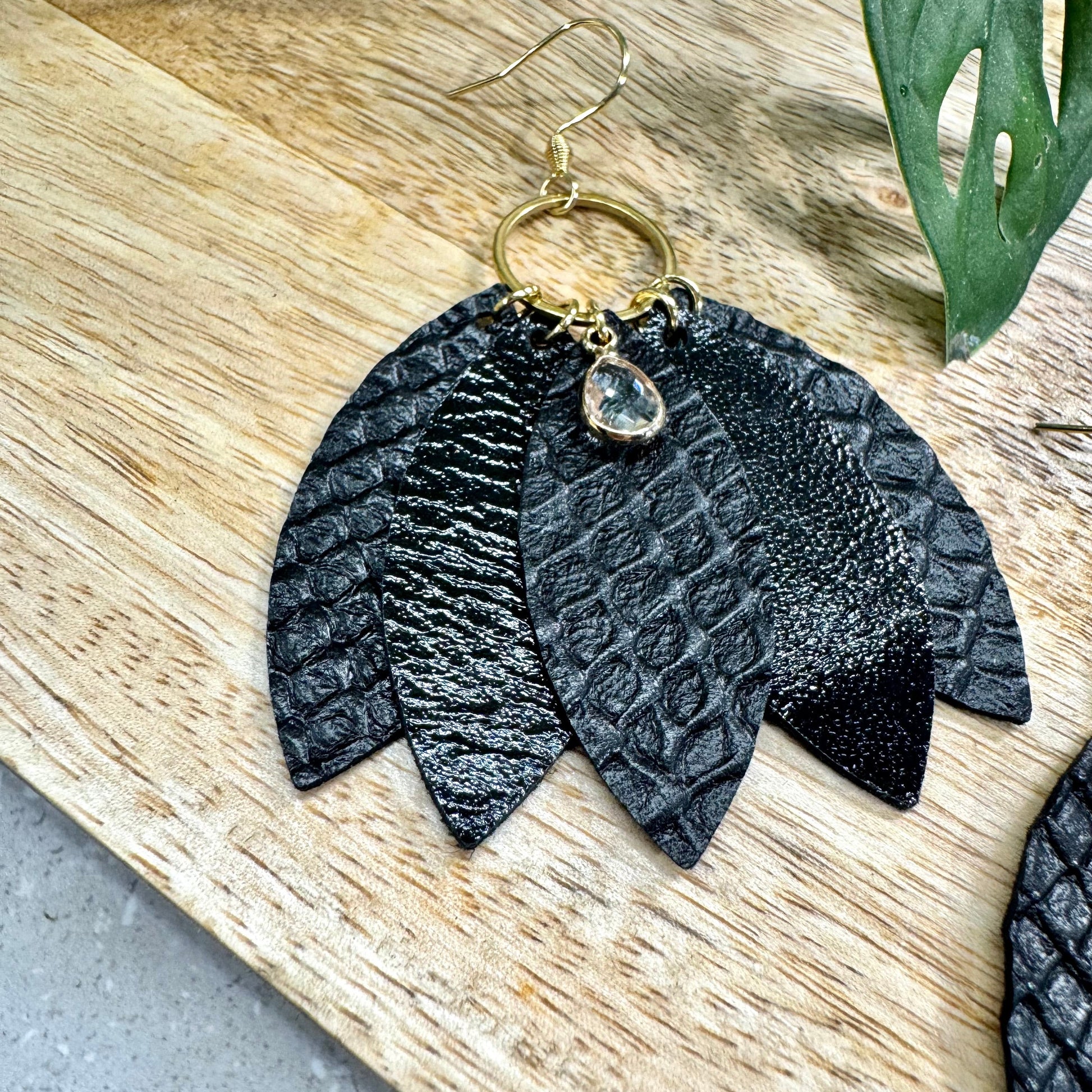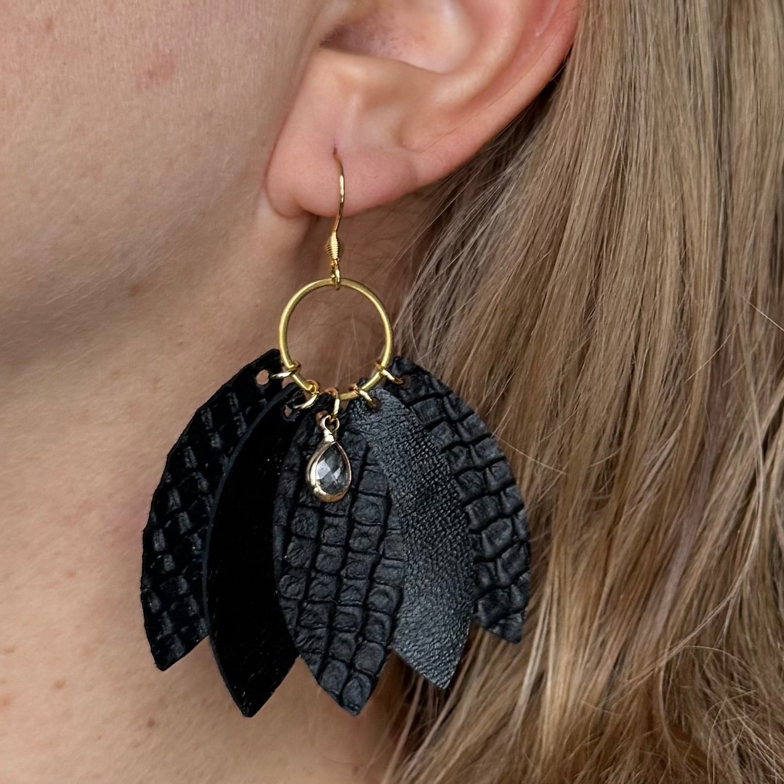 Mustat korvakorut kierrätysnahasta! Korut on valmistettu Italialaisen vaate- ja asustevalmistaja ylijäämäpaloista. Tulossa myöhemmin myös Suomalaista nahkaa.