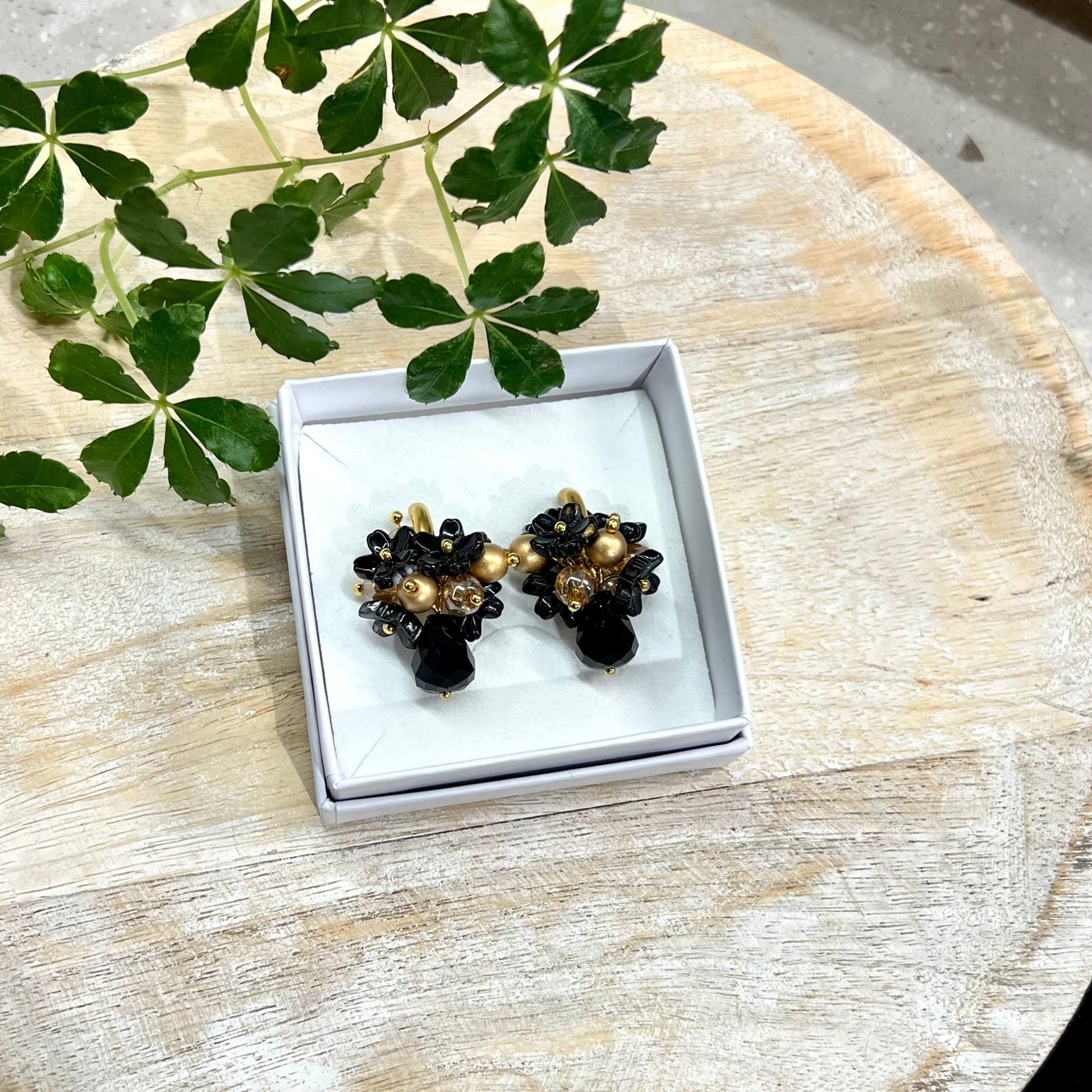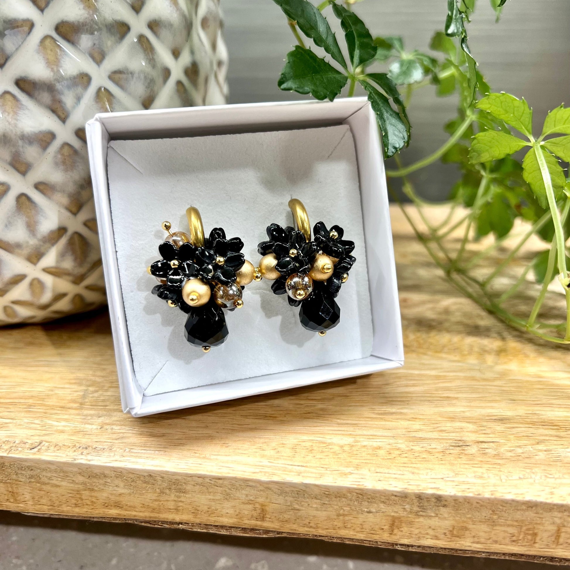 Suositut kukkakorvakorut! Tässä versiossa värityksenä musta ja kulta.