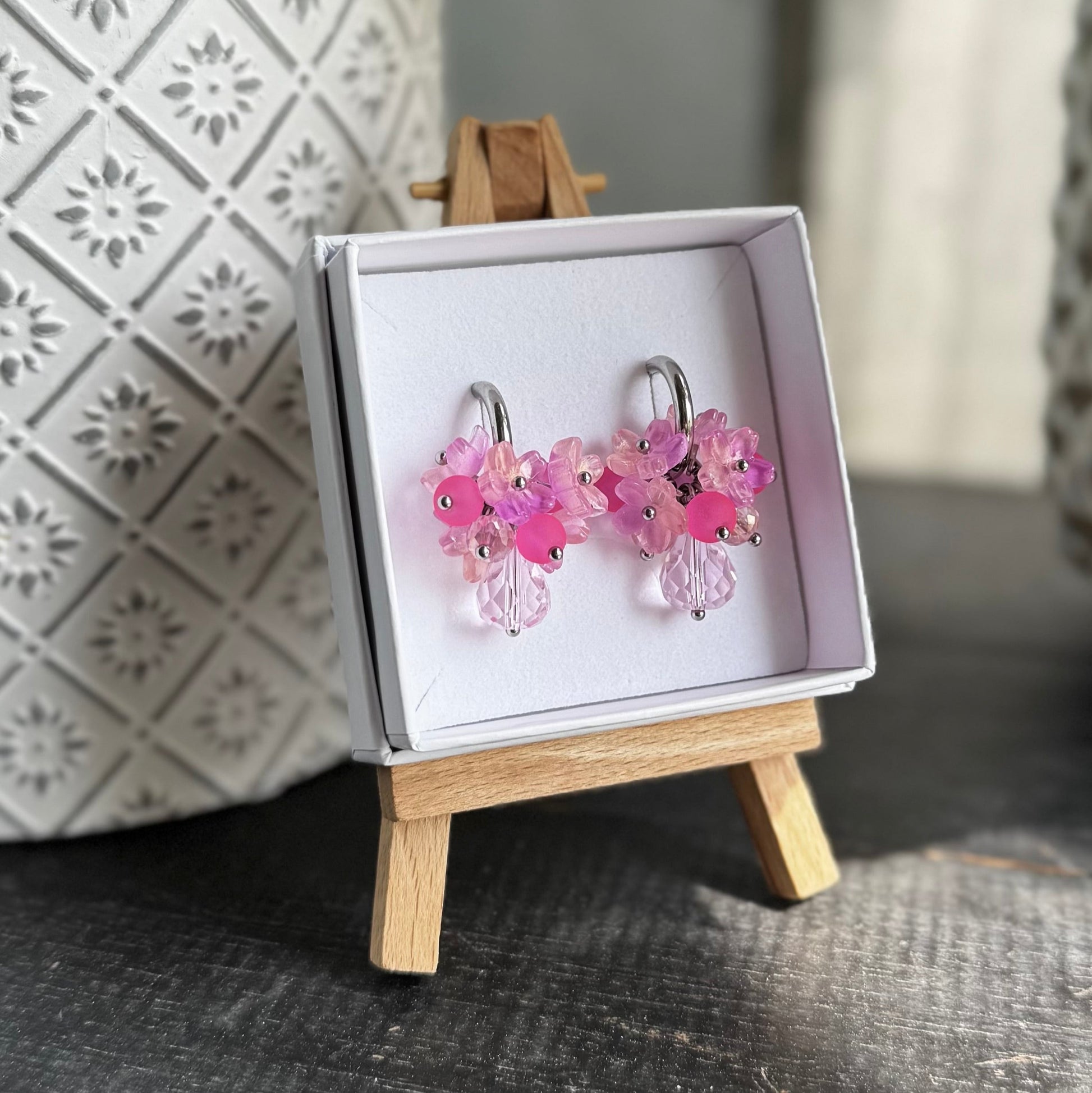 Suositut kukkakorvakorut! Väreinä vaaleanpunaista ja pinkkiä.
