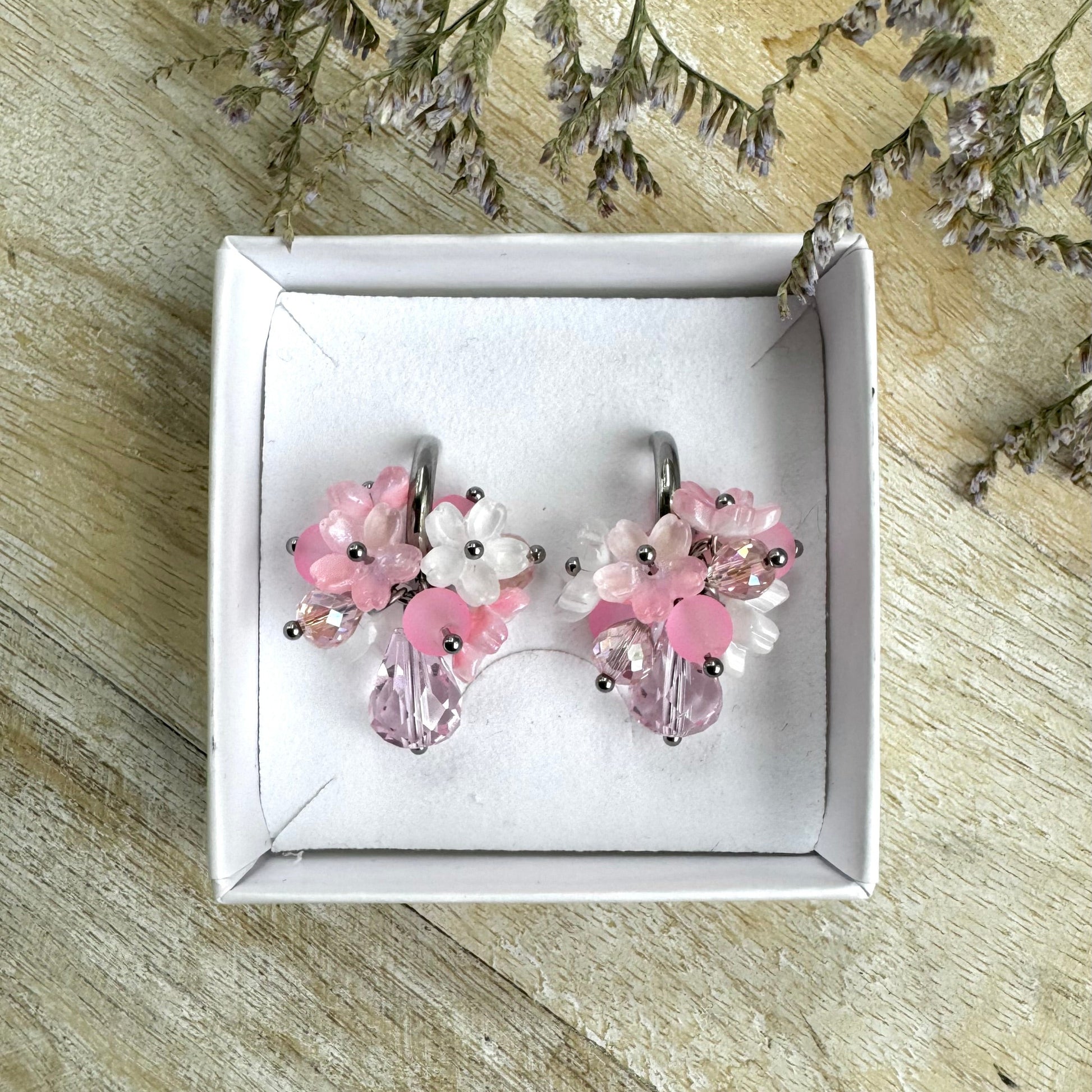 Suositut kukkakorvakorut! Korvakoruista löytyy valkoista ja vaaleanpunaista!