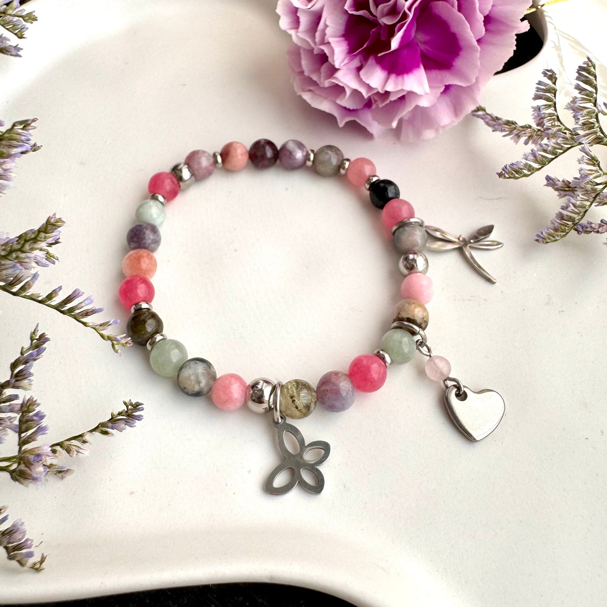 Upea rannekoru värikkäistä luonnonkivihelmistä!