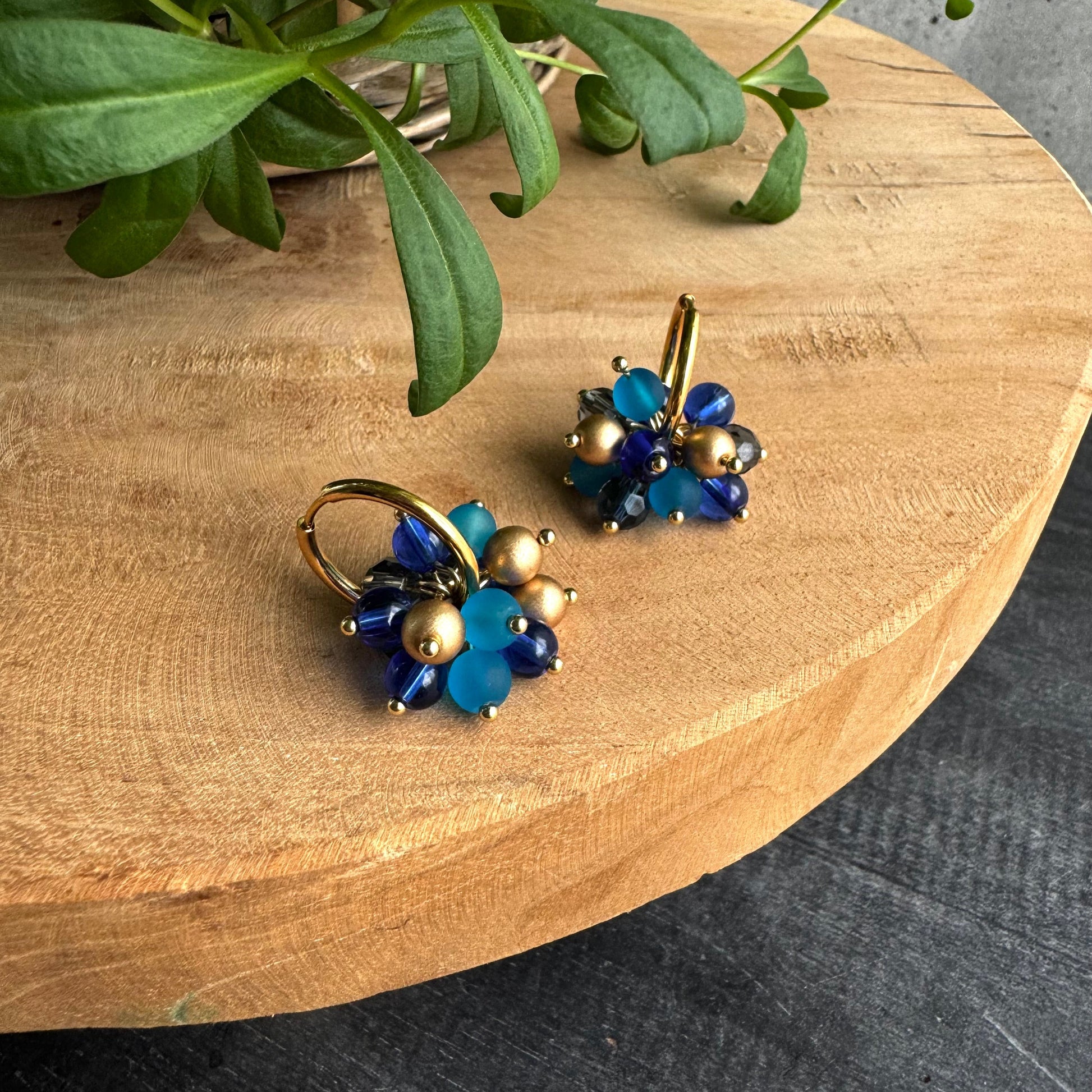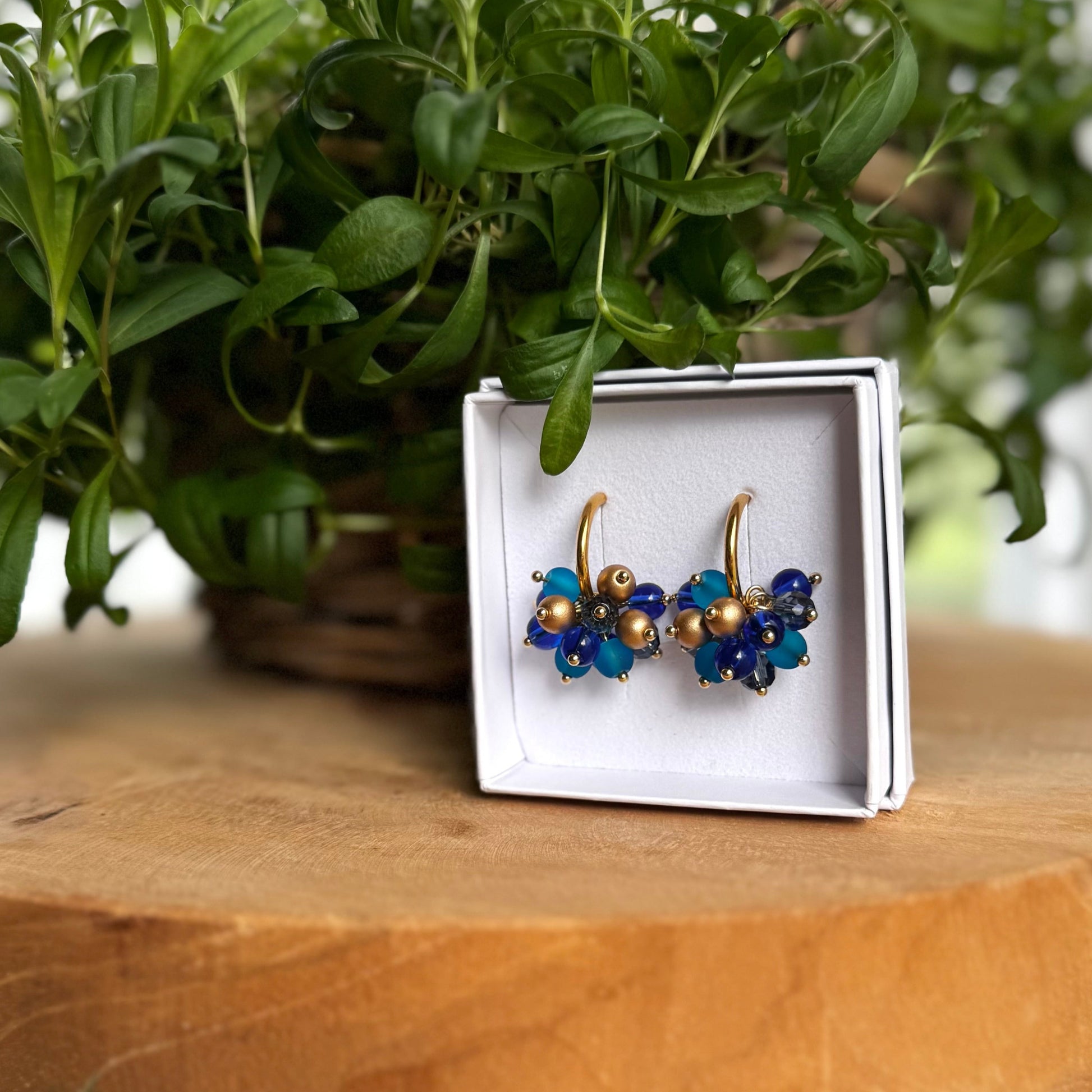 Kaunis helmikimppu kiiltäviä ja mattapintaisia lasihelmiä! Tummansinistä, petroolia ja kultaa.