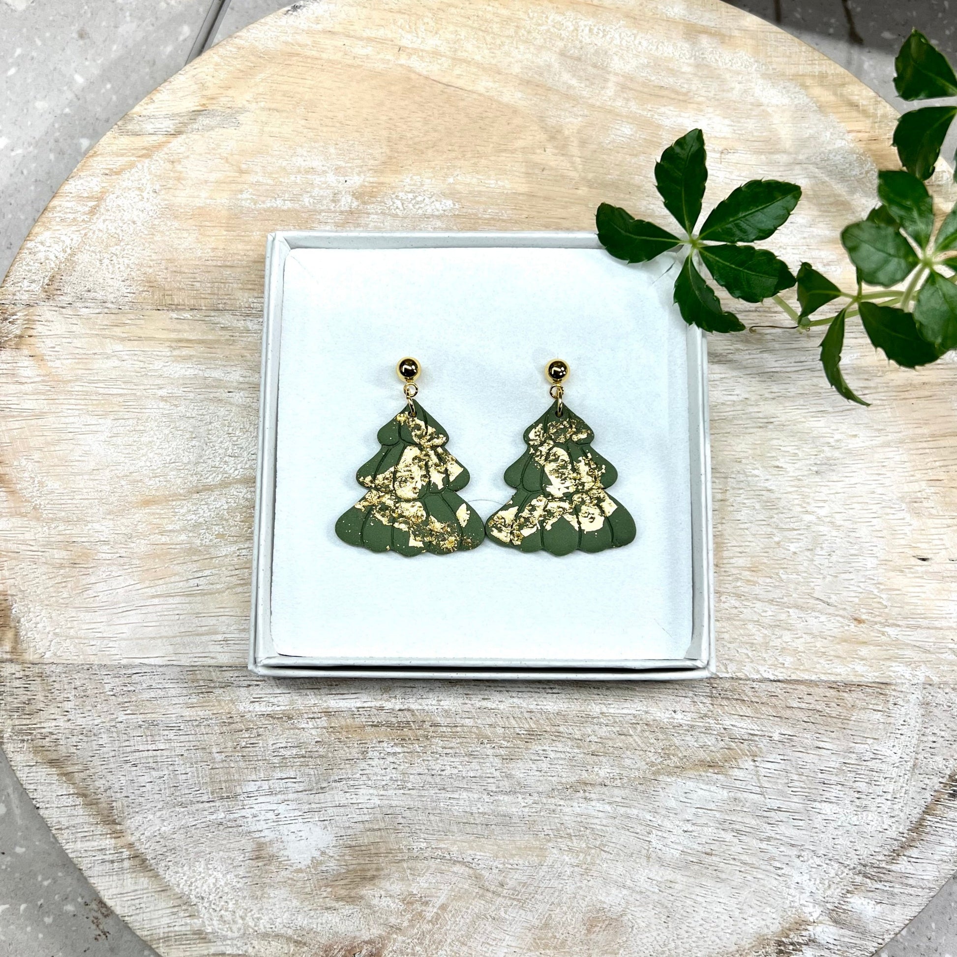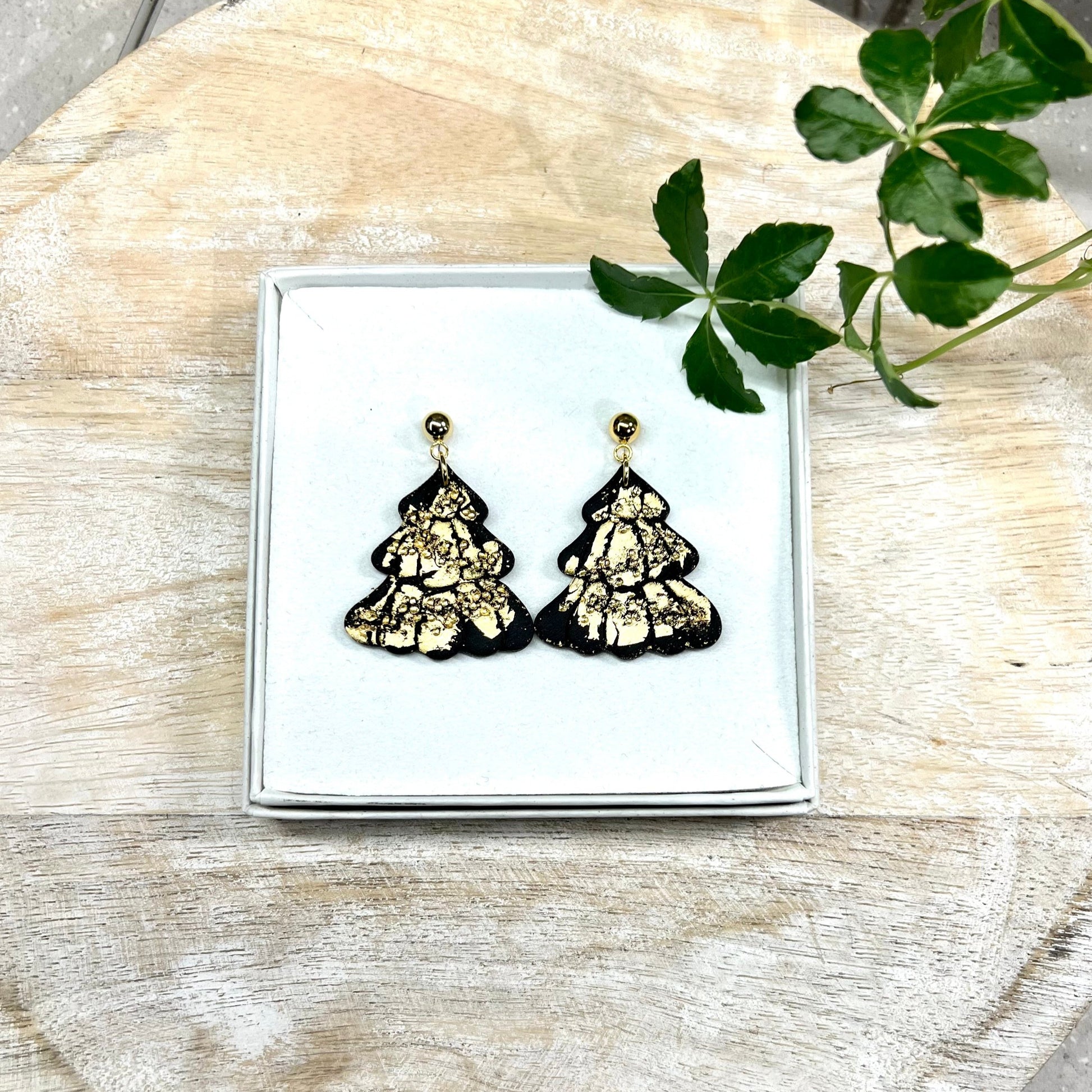 Kuusikorvakorut kullanvärisellä koristuksella! Jokaisen korvakorun kuviointi on uniikki.